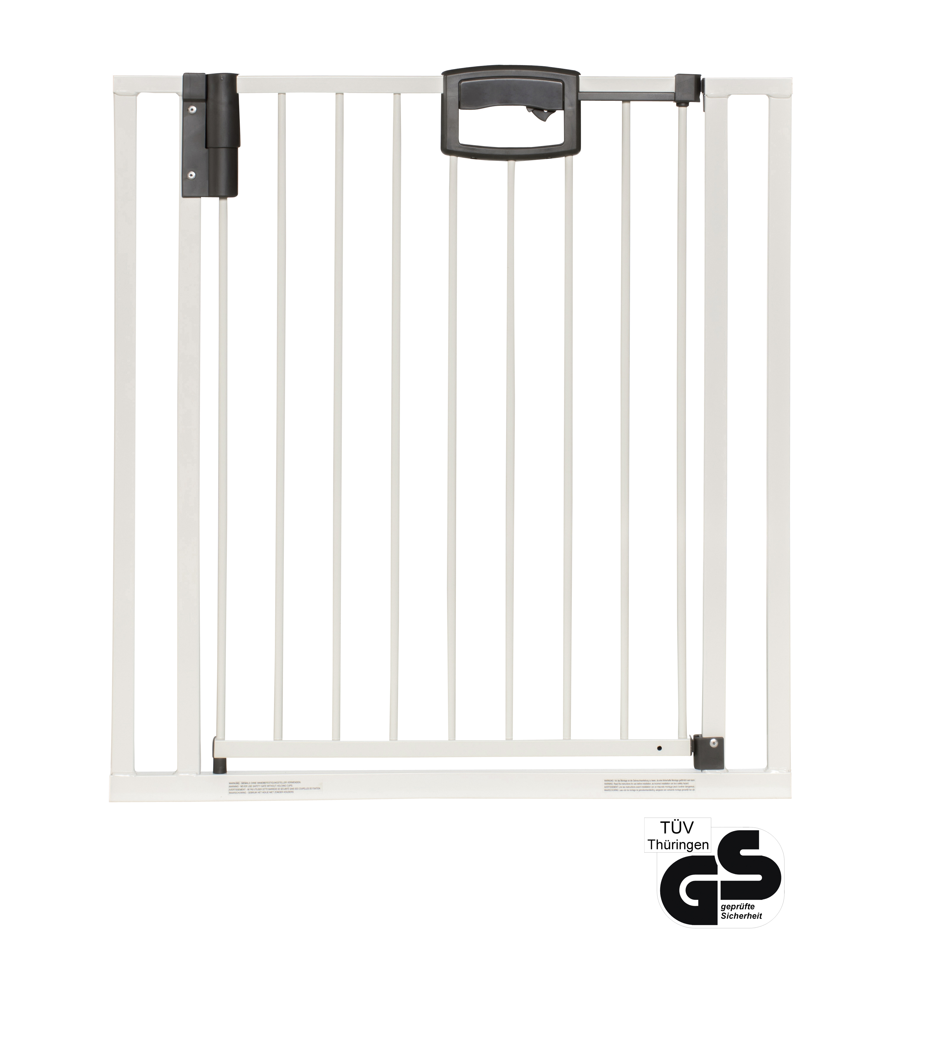 Weil man seine Augen und Ohren nicht überall haben kann, sorgt das Türschutzgitter Easylock Plus dafür, dass Kinder nur dort auf Erkundungstour gehen können, wo es auch sicher für sie ist. Es kann zwischen stabilen Bauteilen, wie zwei Wänden oder im Türrahmen, eingebaut werden und ist sehr komfortabel in der Handhabung. Zum Öffnen drückt man den Hebel am Griff und hebt das Gitter an – einfach für die Erwachsenen, aber ein Hindernis für die neugierigen Kleinen. Die Tür kann beidseitig geöffnet werden und rastet leicht ein, will man aber den Gefahrenbereich einschränken, bringt man einfach den im Lieferumfang enthaltenen Türstopper an, so dass sich die Schwenktür nur noch in eine Richtung öffnen lässt. Ab einem gewissen Winkel bleibt die Türe auch offen stehen. Sollte das Schutzgitter irgendwann nicht mehr benötigt werden, kann es wieder spurlos entfernt werden.