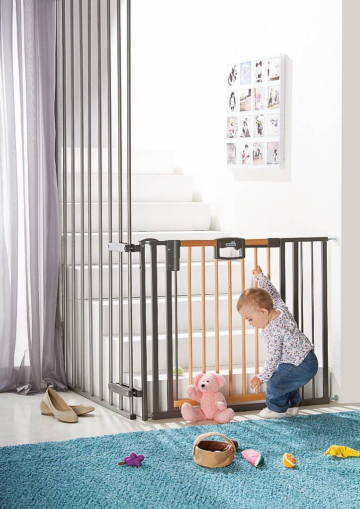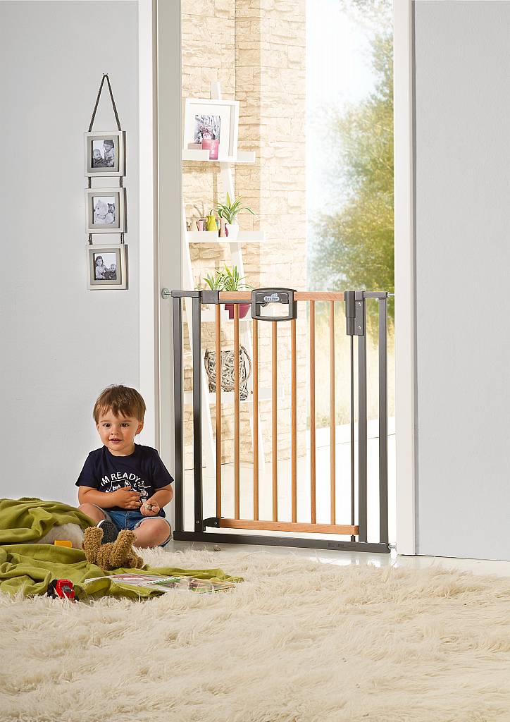 Das Geuther Türschutzgitter Easylock Wood Plus erleichtert den Alltag mit Kindern im Handumdrehen.