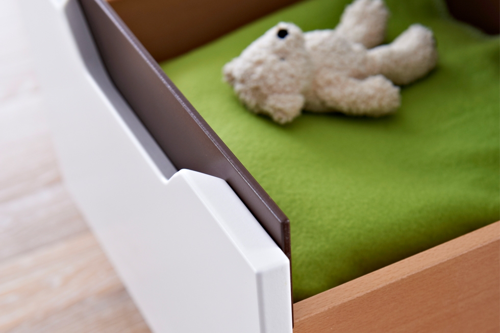 Fresh setzt so fröhlich bunte Akzente und bringt mit in unterschiedlichen Farben lackierten Blenden frischen Wind ins Kinderzimmer! Auch in anderen Dingen liebt Fresh die Abwechslung: Wer sagt eigentlich, dass Schubladengriffe immer exakt untereinander sein müssen? Lebendig soll es sein! Fresh gibt es auch in den beiden Farbvarianten Braun und Weiß.