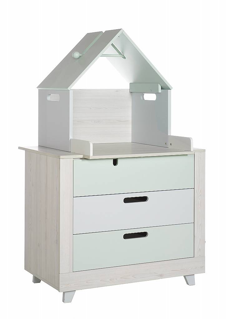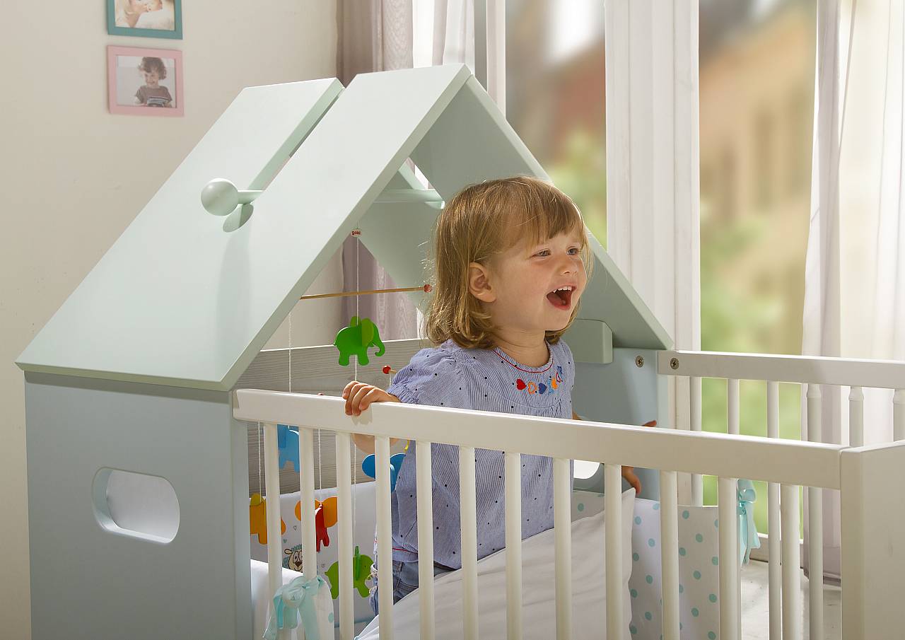 Sicher und gut abgegrenzt schafft MOMO mit seinem Dachelement als moderne Interpretation des Schleiers eine kleine Oase der Ruhe mit Mehrwert. Helle Pastelltöne und eine verspielte Formensprache machen das Kinderzimmer von Anfang an zum Hingucker. Und damit der kleine Liebling auch beim Wickeln nicht abgelenkt wird, gibt es das „eigene Heim“ auch als Wickelaufsatz mit praktischer Stange für erste Greifspiele.