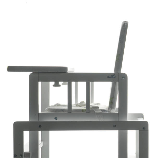 Mal dient er als vollwertiger Hochstuhl, mal als selbstständige Kinder-Stuhl- und Tisch-Kombination.