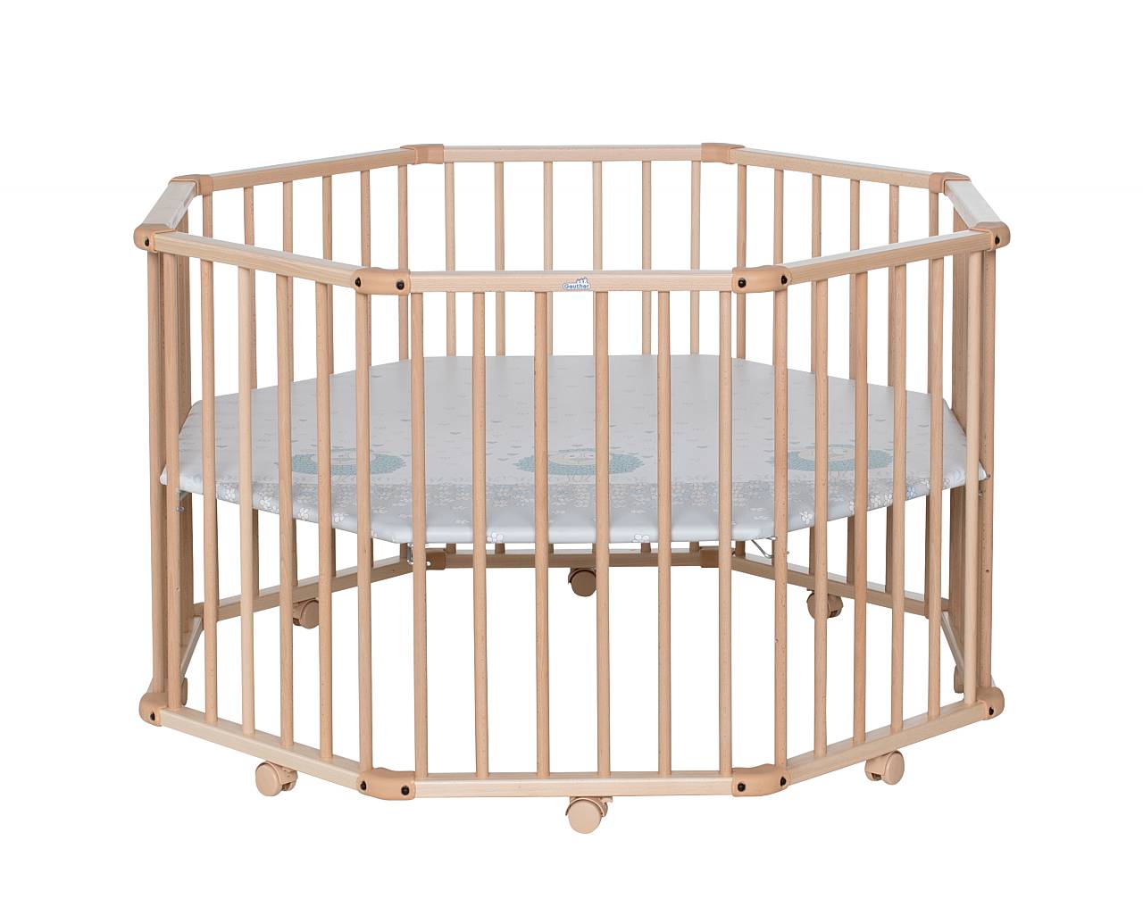 So viel Platz wie möglich, so kompakt wie nötig – das sind die „Schokoladen-Seiten“ von Octo-Parc Plus! Hier passt ein ganzer Zoo an Kuscheltieren rein, hier wachsen Bausteintürme in die Höhe, hier ist auch Platz für erste Dreh-, Steh- und Gehversuche – und sogar den ersten Baby-Besuch. Und soll Octo-Parc Plus dem Staubsauger oder anderen Notwendigkeiten weichen, dann räumt das Laufgitter rollend das Feld – dank seiner 8 Teppichrollen. Mit seinem dreifach höhenverstellbaren und weich gepolsterten Boden ist diese achteckige Spielwiese für drei Entwicklungsstufen geeignet. Nicht zuletzt macht der mobile Octo-Parc Plus eine außergewöhnlich gute Figur.
