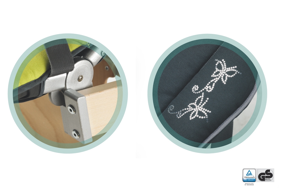 Rocco ist durchdacht bis ins Detail, um Ihr Kind rundum in Sicherheit zu wiegen: Der 5-Punkt-Sicherheitsgurt wird exakt der aktuellen Größe Ihres Kindes angepasst und lässt ihm Bewegungsfreiheit ohne Fluchtmöglichkeit. Nicht nur den Neigungswinkel der Liegefläche, sondern auch Rücken- und Fußstellung können Sie individuell und nach Tagesform variieren. Mal wippt Rocco, mal ist die Wippfunktion arretiert oder Rocco sitzt fest auf dem Hochstuhl Tamino: Auch hier erzielen Sie selbstverständlich maximale Sicherheit ohne Werkzeug, nur per Knopfdruck.