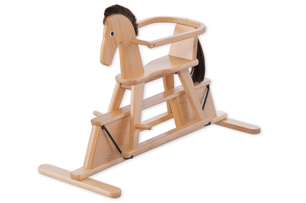 Schaukelpferd mit abnehmbarem Schutzring, Schweif und Mähne