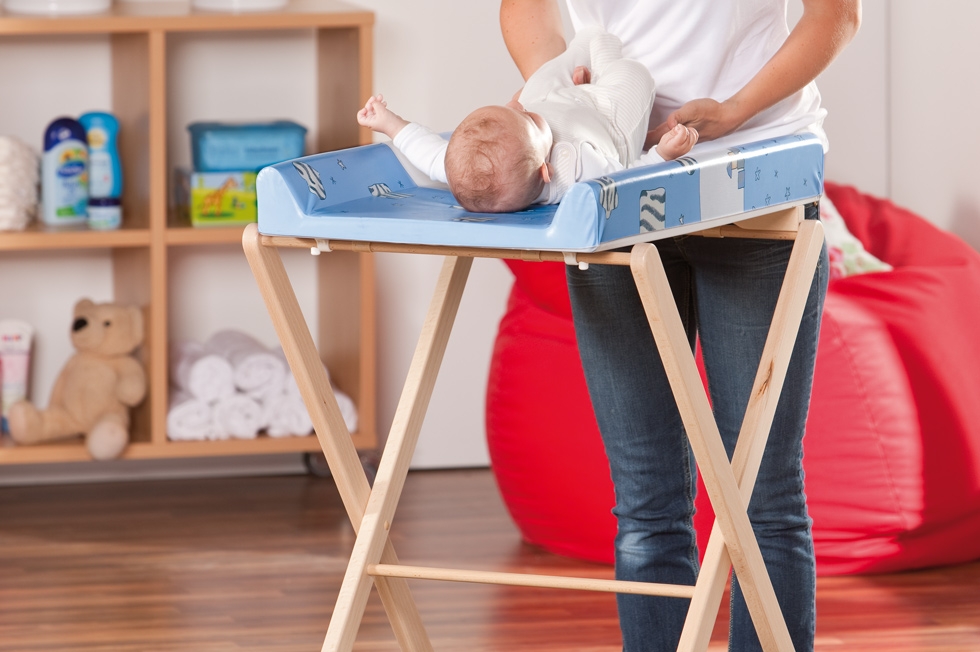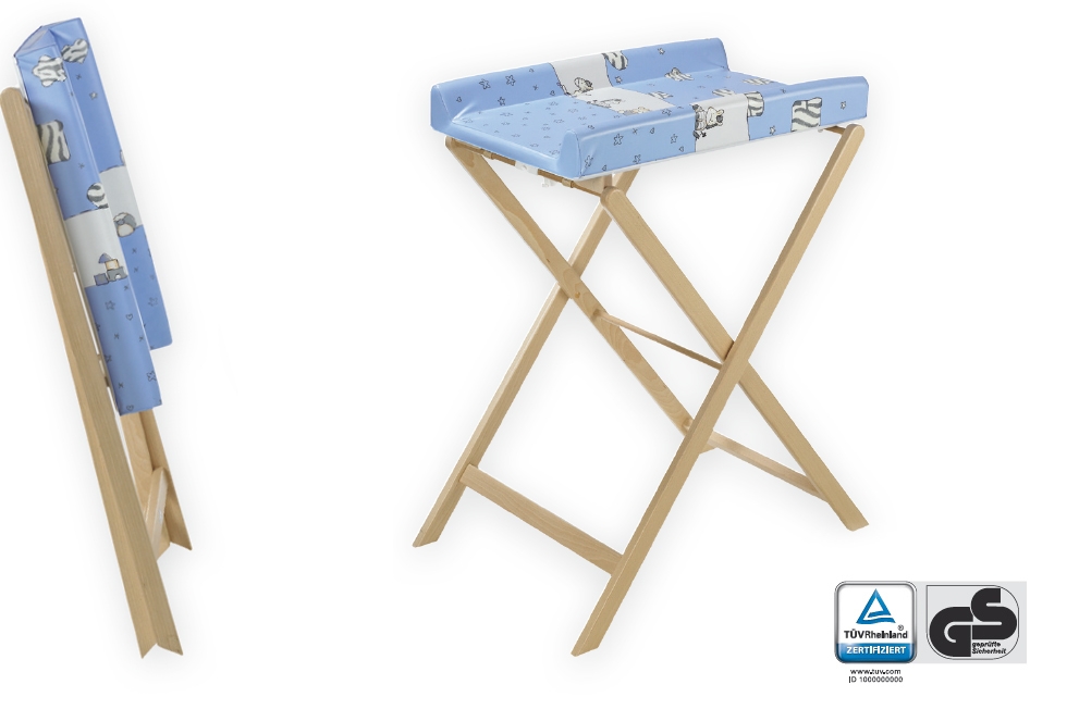 Zeit zum Wickeln? Dann ziehen Sie die auf schmale 19 cm zusammengefaltete Trixi hinter dem Schrank hervor, stellen den massiven Buchenrahmen mit einem Handgriff auf und los geht’s! Ihr kleiner Wonneproppen hat’s schön bequem auf der gepolsterten Wickelfläche und wird in seinem Freiheitsdrang durch den gepolsterten Seitenschutz sicher ausgebremst. Ist erledigt, was zu tun war, verschwindet Trixi wieder dezent im Hintergrund.